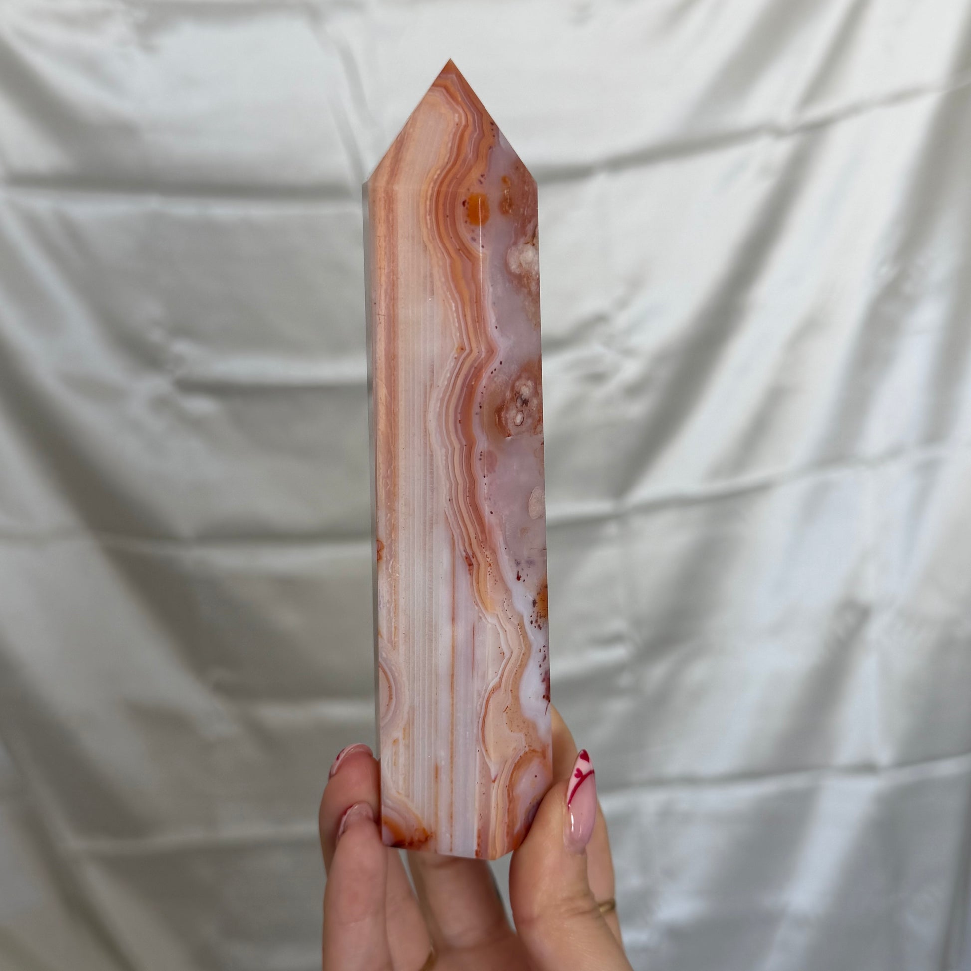 Carnelian and flower agate tower from Madagascar