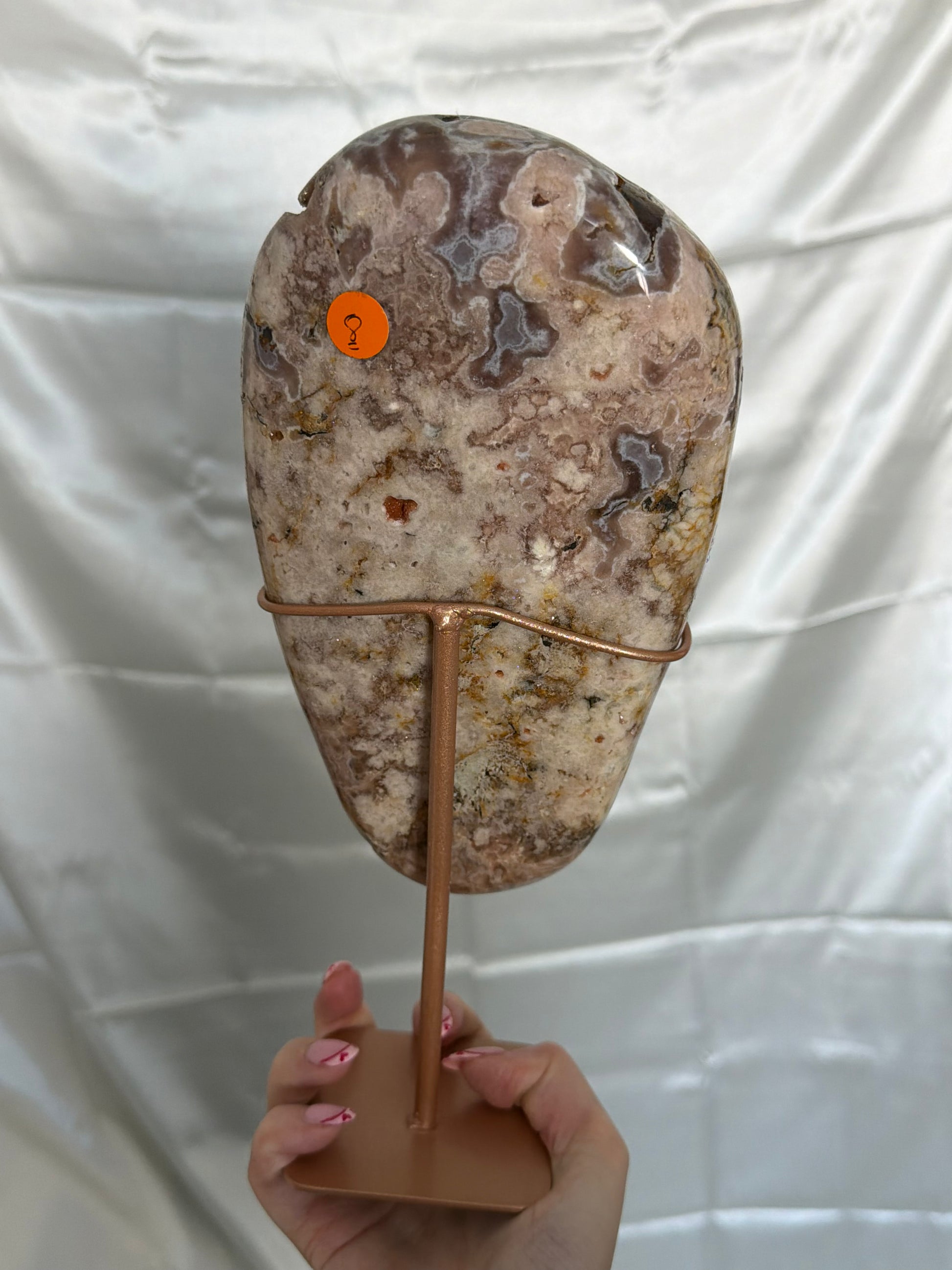 Pink amethyst slab on stand from Brazil